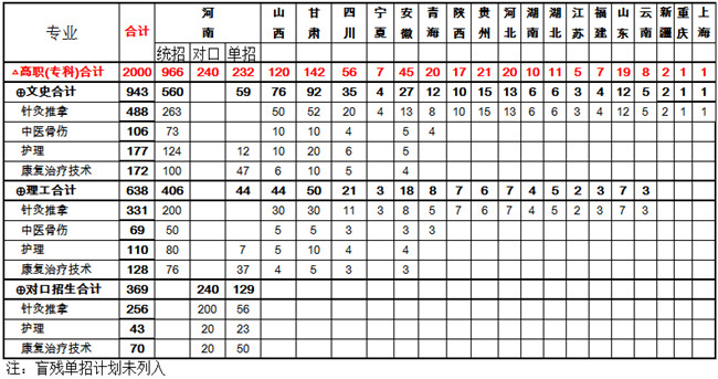 河南推拿职业学院2017年招生计划表