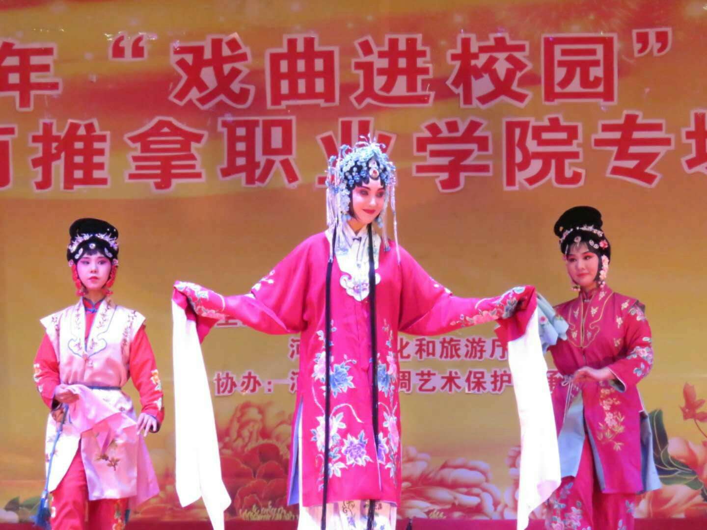 5月13日,由河南省教育厅、文化和旅游厅联合主办的2019年“戏曲进校园”高校组演出活动在我院进行专场演出,团委副书记马珊及300余名师生到场观看。 演出分为戏曲知识讲座、经典选段展示两部分。河南省越调团的演员们为现场师生带来了一场精彩的视听盛...