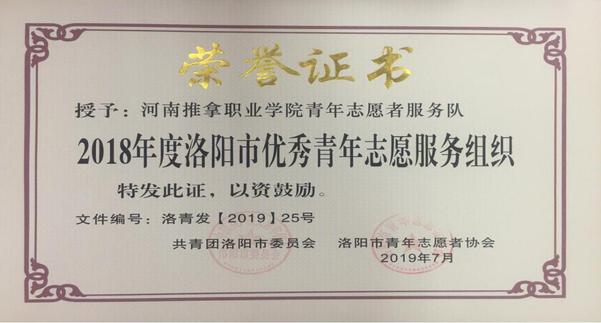 近日,共青团河南省委、河南省教育厅和共青团洛阳市委分别下发表彰文件,我院师生荣获多项荣誉。 共青团河南省委、河南省教育厅下发《关于表彰 2019 年河南省普通高等学校三好学生、优秀学生干部和先进班集体的决定》...