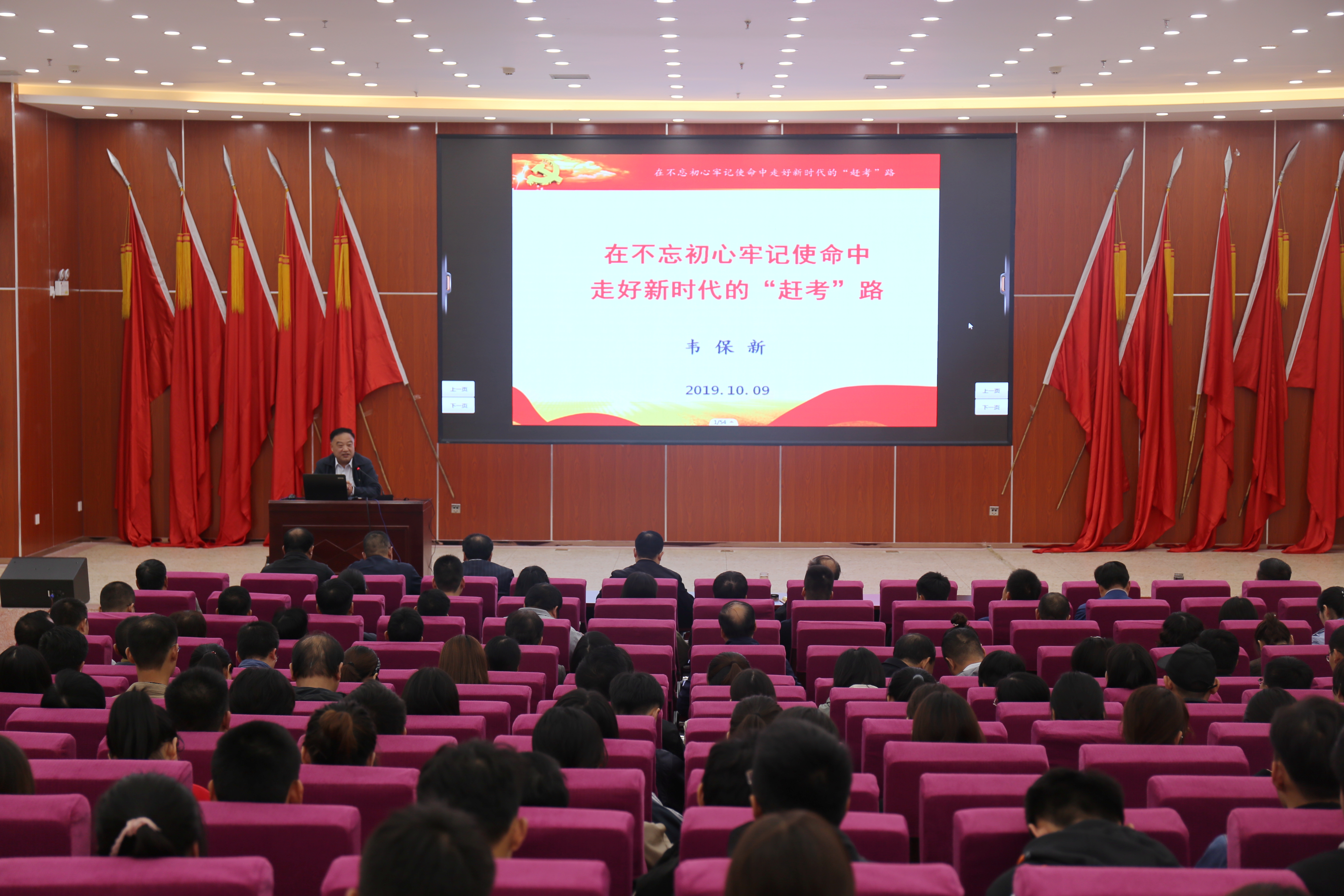 为进一步学习贯彻习近平新时代中国特色社会主义思想和党的十九大精神,高质量开展“不忘初心、牢记使命”主题教育,10月9日下午,党委书记韦保新同志在图书馆一楼报告厅讲授题为“在不忘初心牢记使命中走好新时代的‘赶考’...