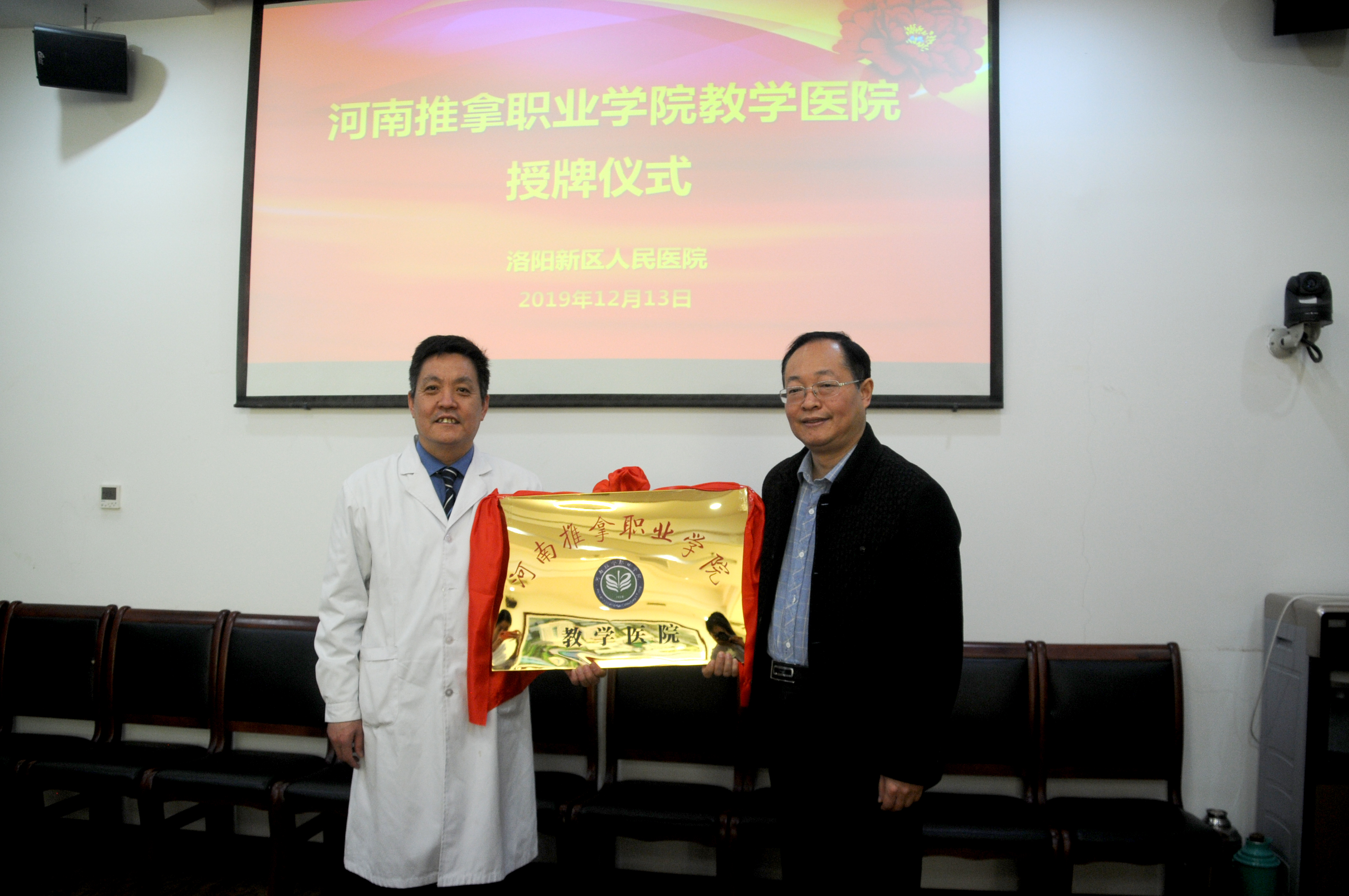 12月26日上午,学院2019年社会奖助学金发放仪式在二楼视频会议室举行。副院长王轶群,无锡好轻松盲人推拿有限公司董事长严三媛,洛阳泽腾餐饮管理有限公司总经理张俊峰,北京京洛健康科技有限公司总经理杨晓成,学生处(...