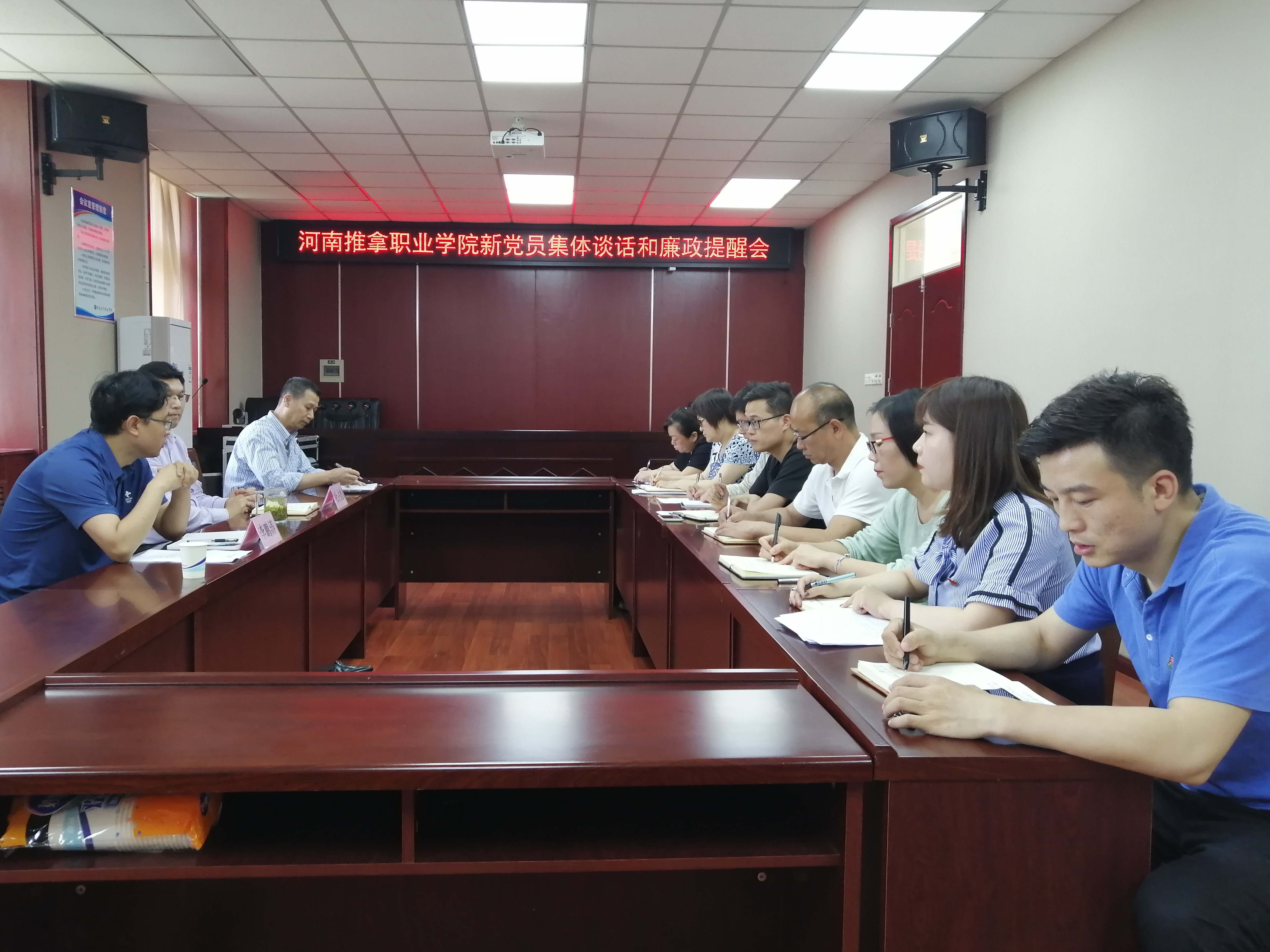 6月18日下午,转正党员集体谈话和廉政提醒会在行政楼二楼视频会议室召开,院党委副书记杜占彪、纪委书记李鹏涛出席,学院各党支部共8名转正党员参加会议。会议由组织人事处副处长楼旭主持。 会上,李鹏涛同志从“知党史,...