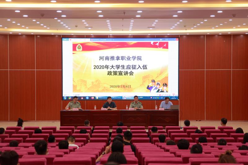 为进一步做好学院2020年大学生应征入伍工作,7月6日上午在行政楼二楼会议室召开我院大学生征兵工作推进会。学院党委副书记杜占彪、武装部部长高勇、各系部负责人参加。 会上,高勇同志详细传达了教育部、中央军委国防动员部和河南省、...