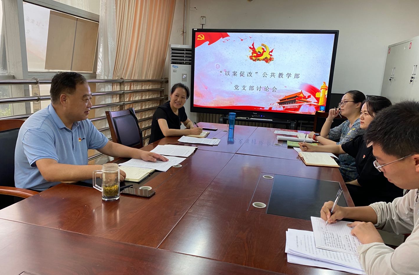 为进一步推进全面从严治党向纵深发展,强化警示教育,净化教书育人环境,8月7日下午,公共教学部党支部召开“以案促改”专题学习讨论会。党委书记韦保新以普通党员身份参加讨论会。 支部书记谭小芍首先领学了习近平总书记关于“...