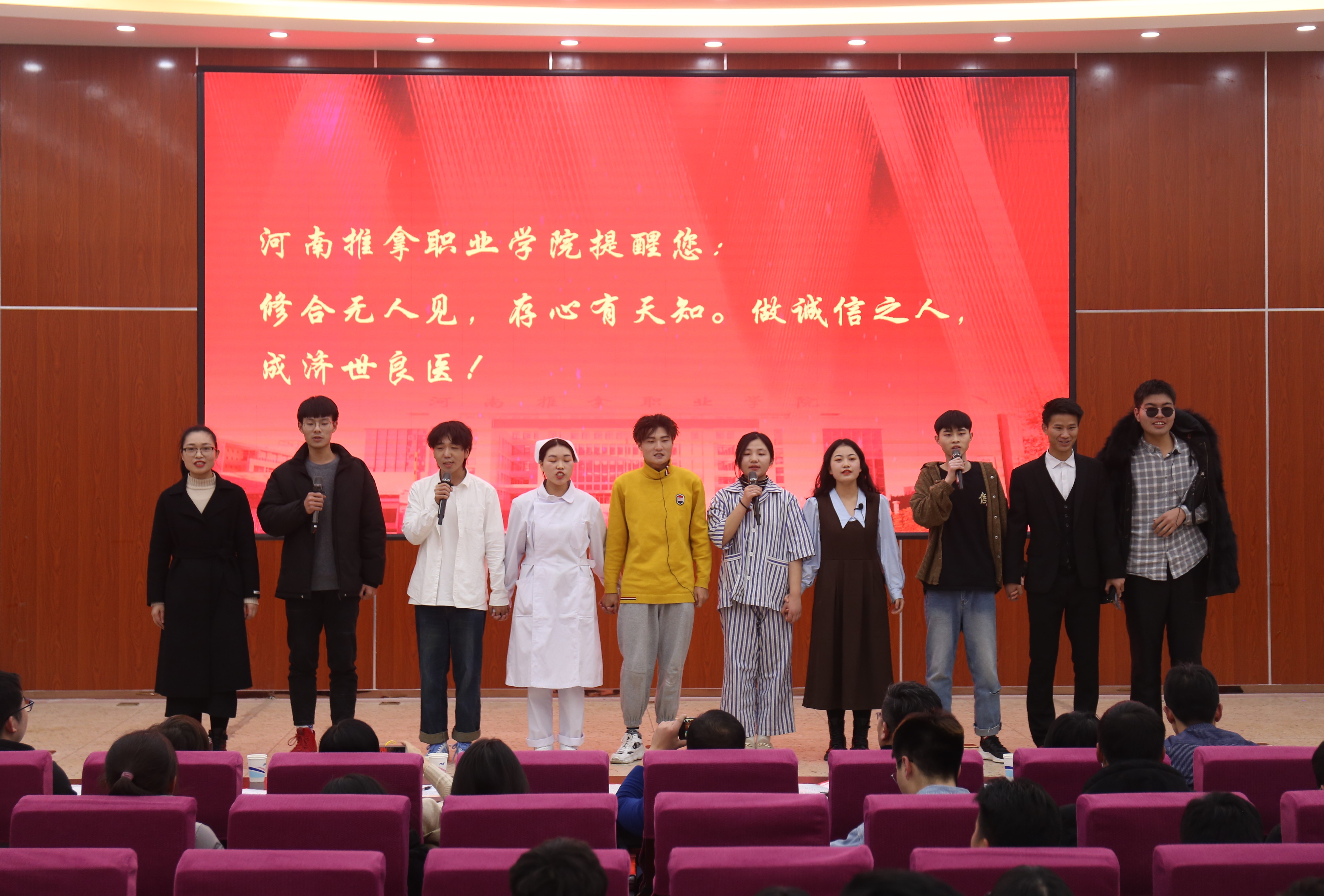 12月18日晚,我院2020年校园情景剧大赛(决赛)在图书馆一楼报告厅举行。各部门相关负责同志及400余名师生一同观看比赛。 本次大赛由“筑梦青春,追梦成长”为主题的心理情景剧比赛和“诚信筑未来,奋进新时代”为主题的“...