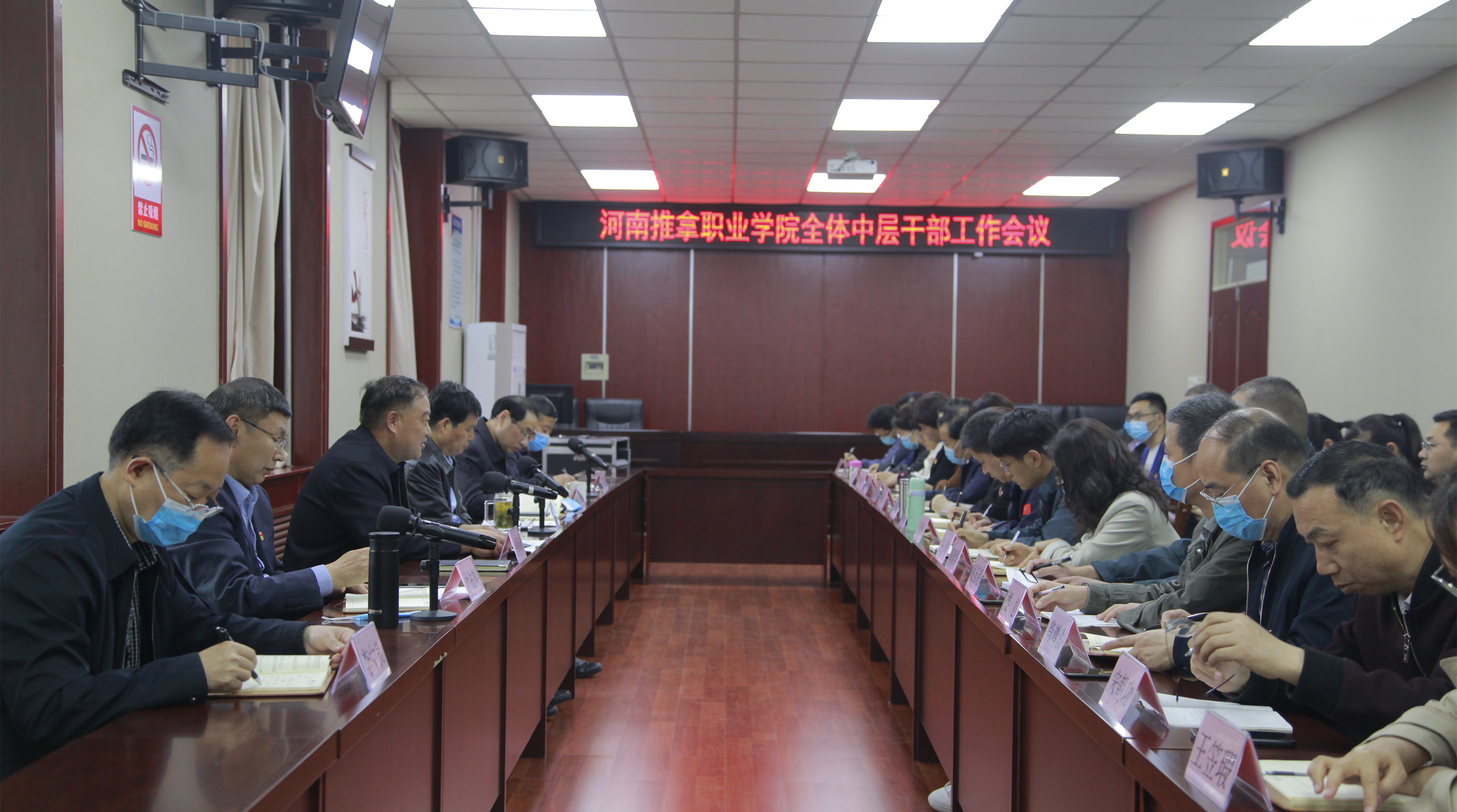 院领导为中层干部上专题党课 进行集体廉政谈话和履职能力提升培训 4月21日,学院召开全体中层干部会议,党委书记韦保新,院长冯民生,党委副书记杜占彪,副院长王轶群、李中良,工会主席张志强出席,...