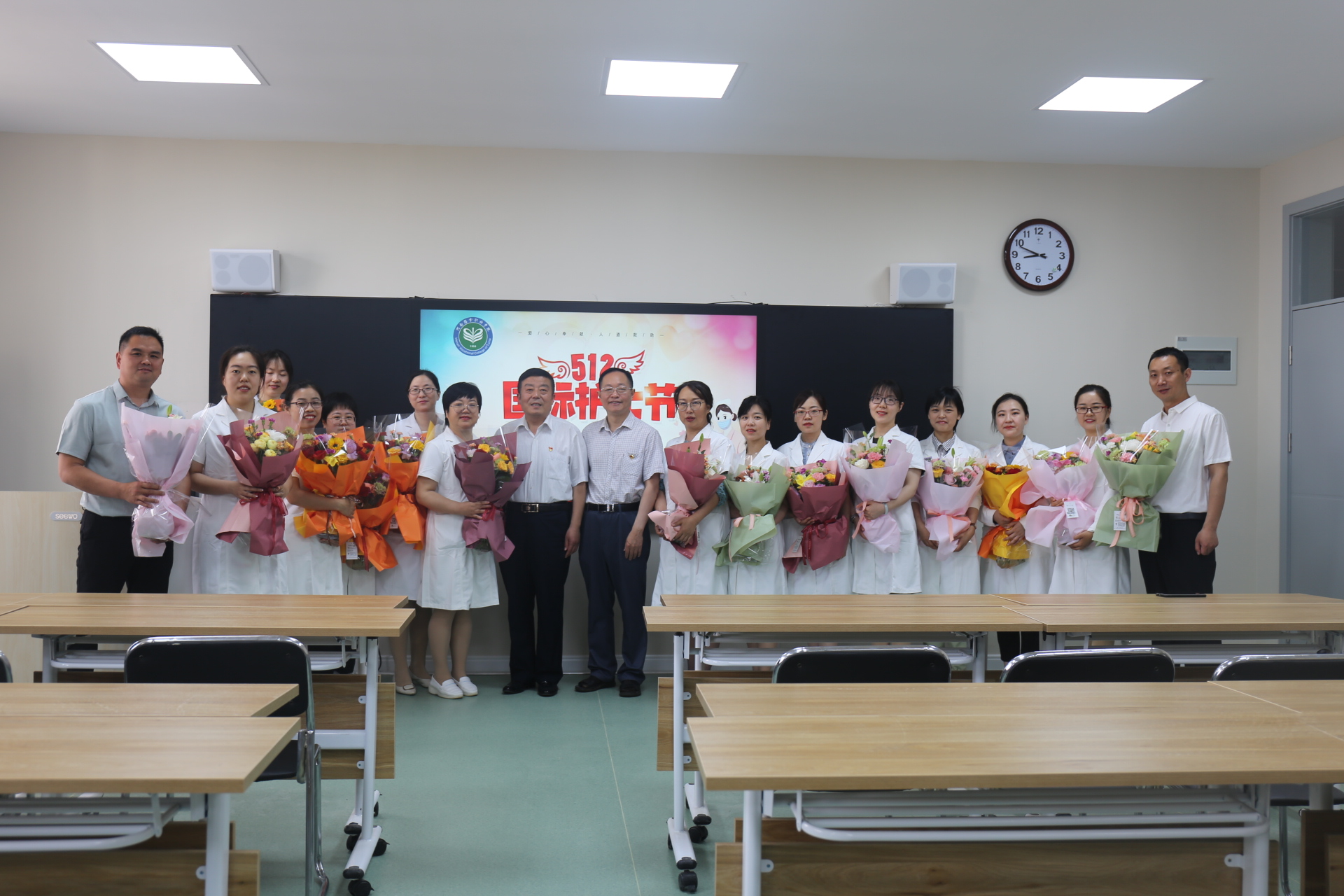5月12日上午,在第110个国际护士节来临之际,我院副院长李中良、工会主席张志强到护理系看望慰问辛勤工作在教学一线的教师们,亲自为他们送上鲜花,并致以节日的问候和崇高的敬意。 李中良同志代表学院领导班子对护理系教师送上节日的祝福,...