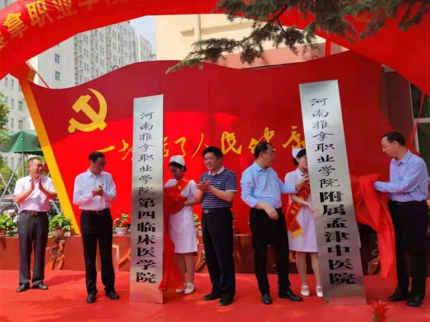 5月21日上午,河南推拿职业学院、孟津中医院合作共建签约暨河南推拿职业学院附属孟津中医院揭牌仪式在孟津中医院举行。 孟津区人民政府四级调研员陆乡灵,孟津区卫健委党组书记韩新望,孟津中医院班子成员,学院副院长王轶群,...