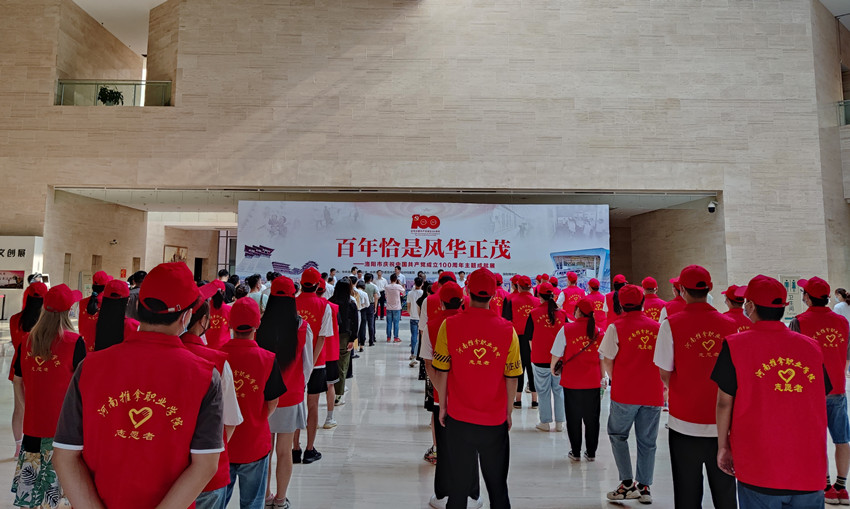 6月30日上午,“百年恰是风华正茂——洛阳市庆祝中国共产党成立100周年主题成就展”在洛阳博物馆拉开帷幕。我院组织50余名师生志愿者参加活动。 活动现场,我院志愿者们积极开展志愿服务,引导现场参观人员有序进场、...