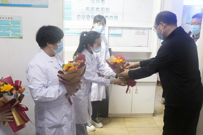 5月11日上午,在第111个国际护士节到来之际,学院副院长王轶群深入附属医院一线,对坚守岗位的护理工作者致以节日的问候。 在医院护理部,王轶群同志与一线护理工作人员亲切交谈并送上鲜花,感谢大家为疫情防控、提升医疗服务品质等方面做出的积极贡献...