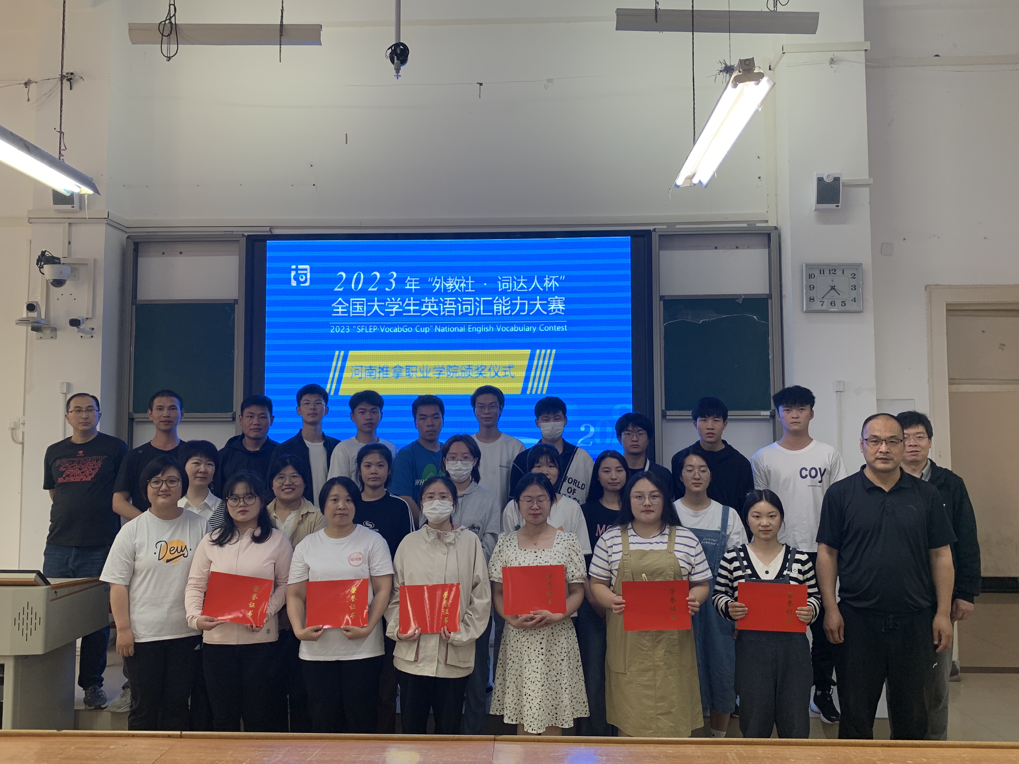 近日,第三届“外教社·词达人杯”全国大学生英语词汇能力大赛河南赛区成绩揭晓,我院学子在比赛中取得优异成绩。 本次比赛启动后,公共教学部组织我院2020级、2021级、2022级共400多名学生进行校内选拔赛,33名学生晋级省赛,...