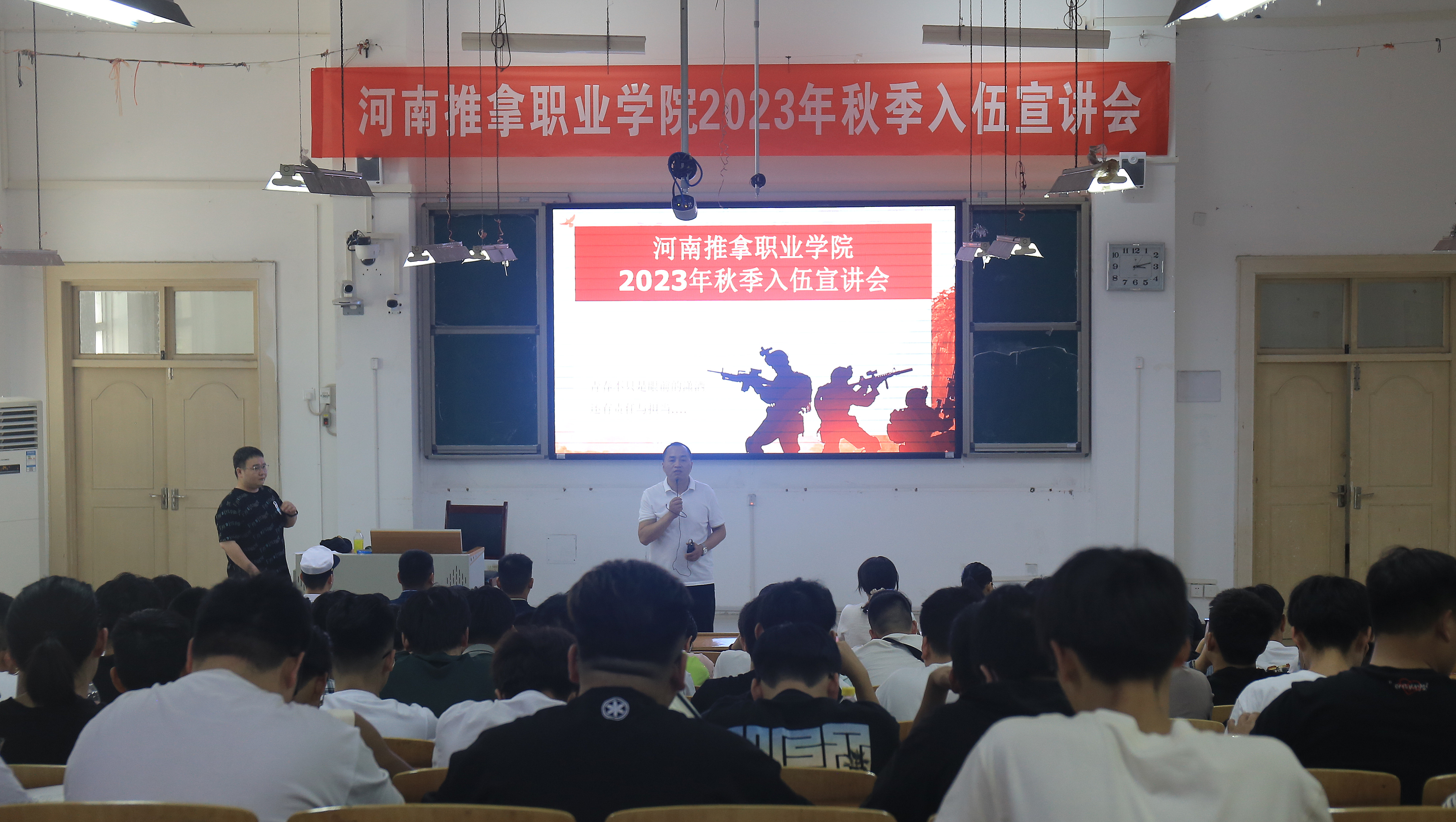 6月14日下午,学院武装部、针灸推拿系在第二阶梯教室举办了2023年秋季征兵宣讲会,我院3名退役往届毕业生应邀参加征兵宣讲,相关部门负责人及近150名2023届毕业生参会。 会上,学院武装部负责人对今年秋季征兵工作进行了总体部署和安...