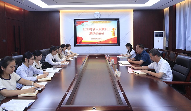 为增强新入职教师的廉洁意识,强化师德师风建设,9月20日下午,学院召开2023年新入职教师集体廉政谈话会。党委书记韦保新出席会议并讲话,纪委办公室相关人员和今年新入职教师参加会议。 会上,纪委办公室负责人带领新入职教师集体学习了习近平总书记关...
