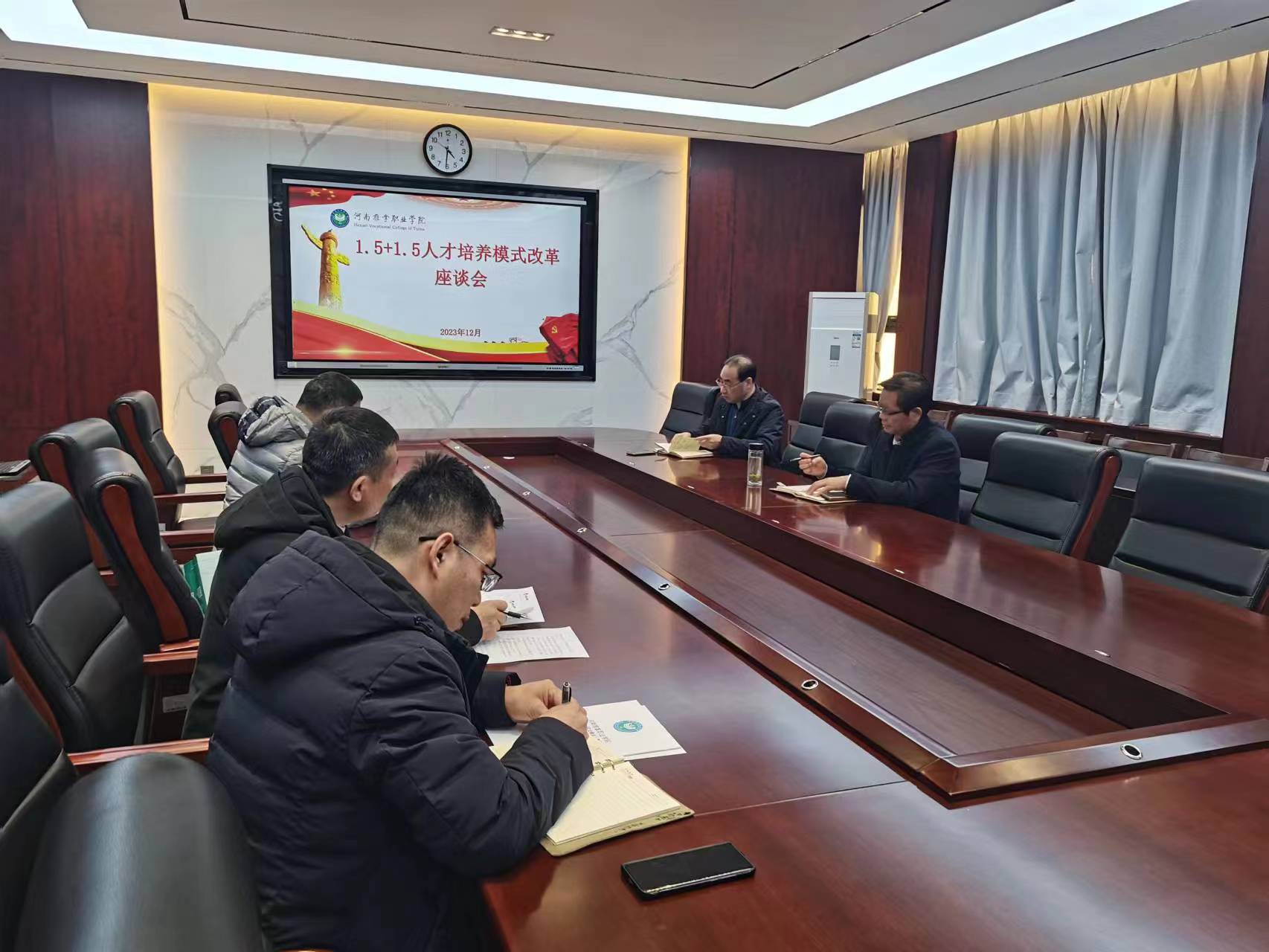 12月25日下午,学院在行政楼二楼会议室召开1.5+1.5人才培养模式改革座谈会。院长陈相新出席会议,教务处、针灸推拿系、中医系、康复系等部门负责人参加会议。副院长王轶群主持会议。 会上,与会人员聚焦1....