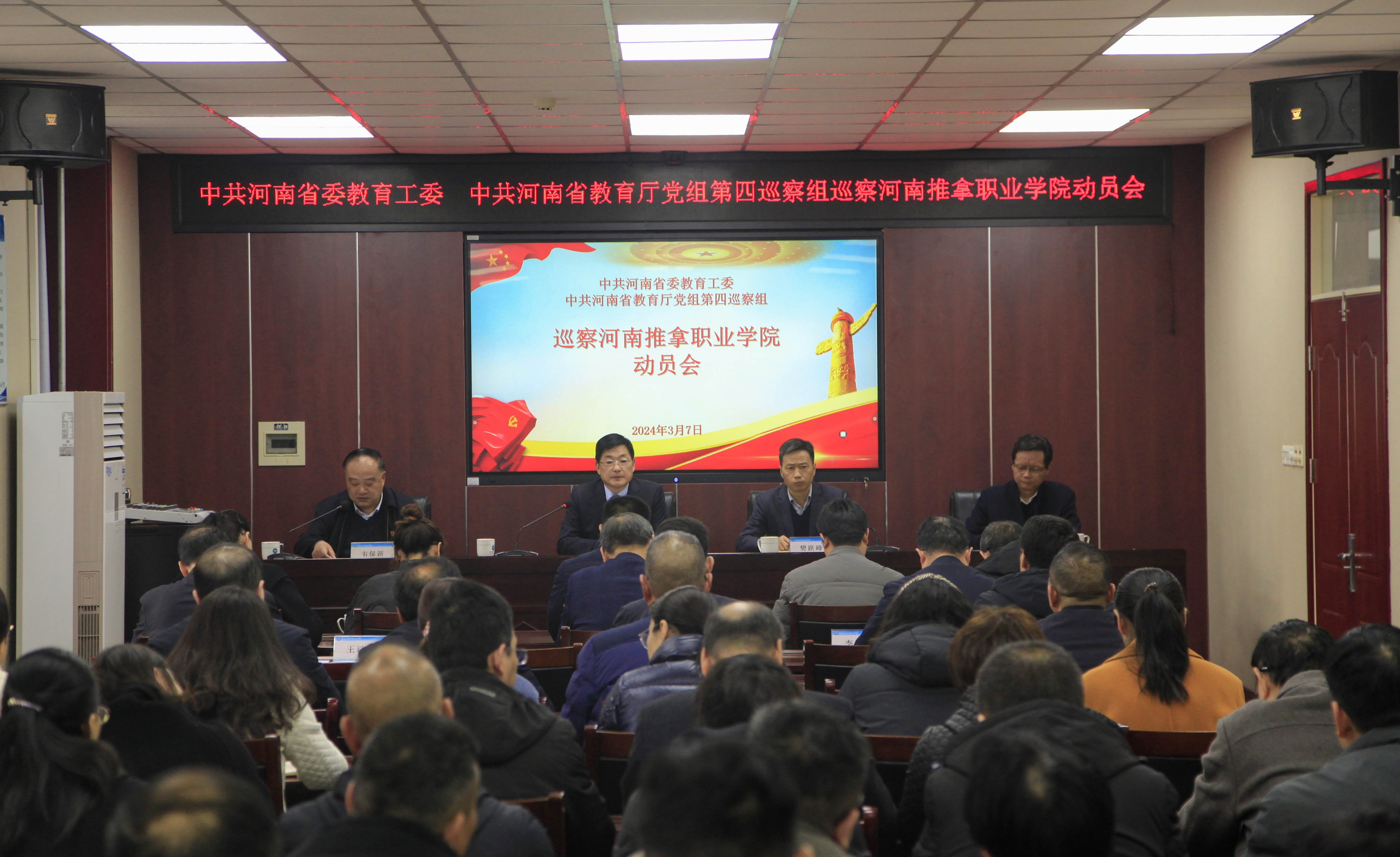按照省委教育工委、省教育厅党组2024年度巡察工作统一部署,2024年3月7日上午,省委教育工委、省教育厅党组第四巡察组巡察河南推拿职业学院工作动员会召开。会前,第四巡察组组长张向战主持召开与学院主要负责人的见面沟通会,...