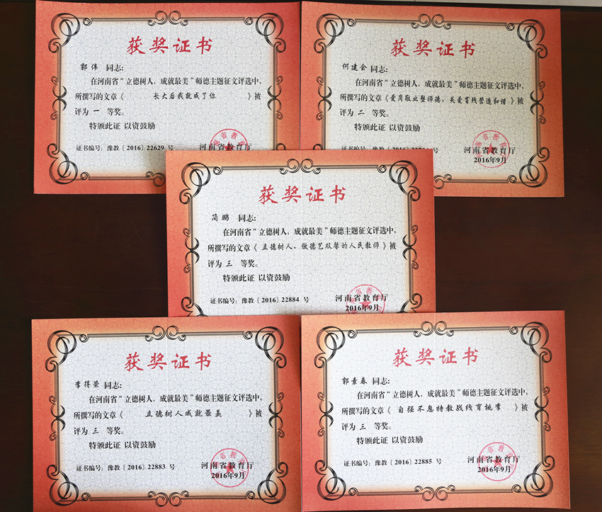 日前,由河南省教育厅组织开展的2016年“立德树人,成就最美”师德师风征文比赛结果揭晓,我院郭伟老师的《长大后我就成了你》荣获一等奖,何建会老师的《爱岗敬业塑师德,关爱盲残营造和谐》荣获二等奖,李得荣老师的《...