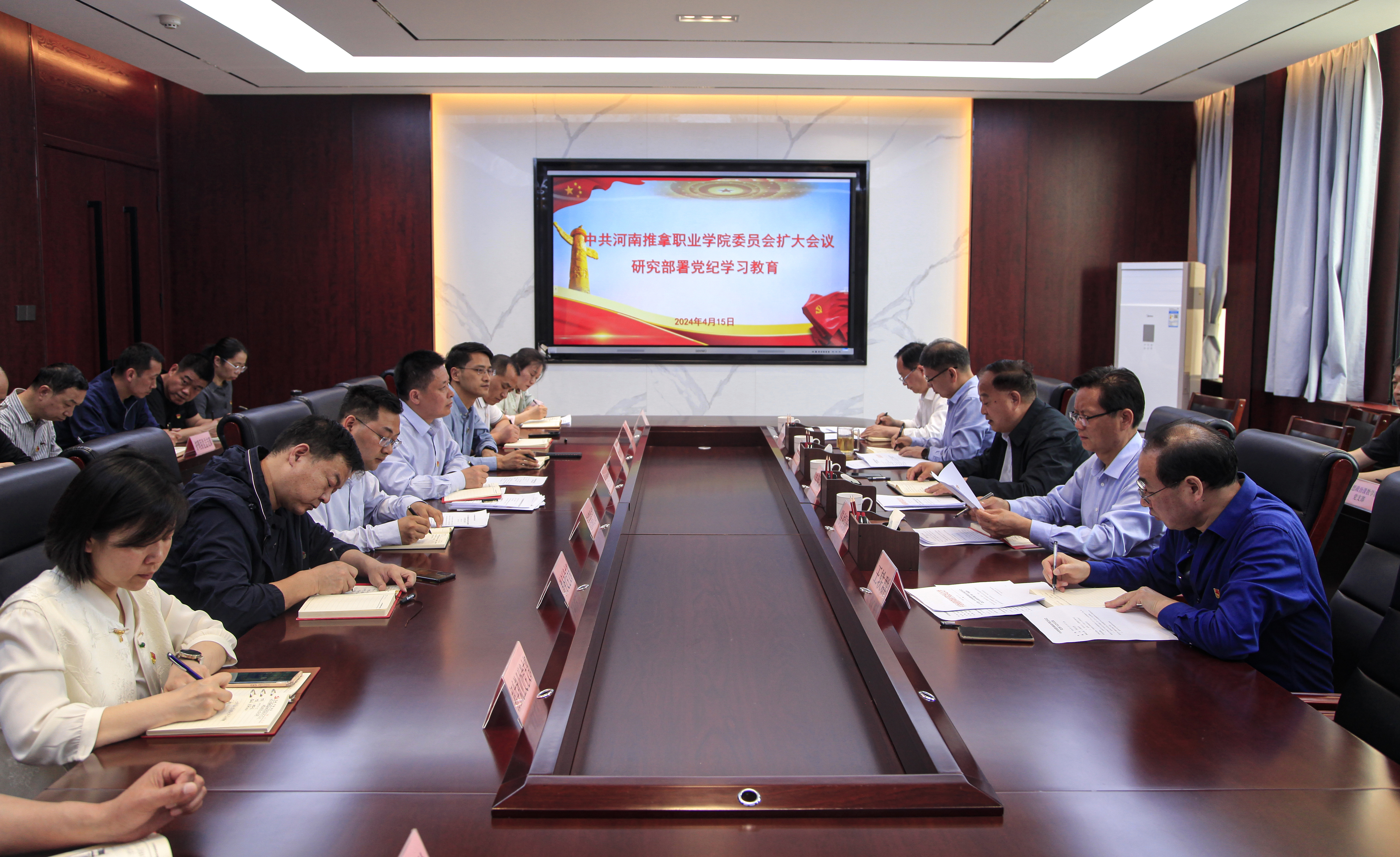 4月15日下午,学院在二楼会议室召开党纪学习教育动员部署会。院领导韦保新、陈相新、杜占彪、王轶群、李中良出席会议。学院各党总支、支部书记(负责同志)参加会议。会议由院长陈相新主持。 会上,党委书记韦保新传达了4月12日省委常委扩大会议精神。....
