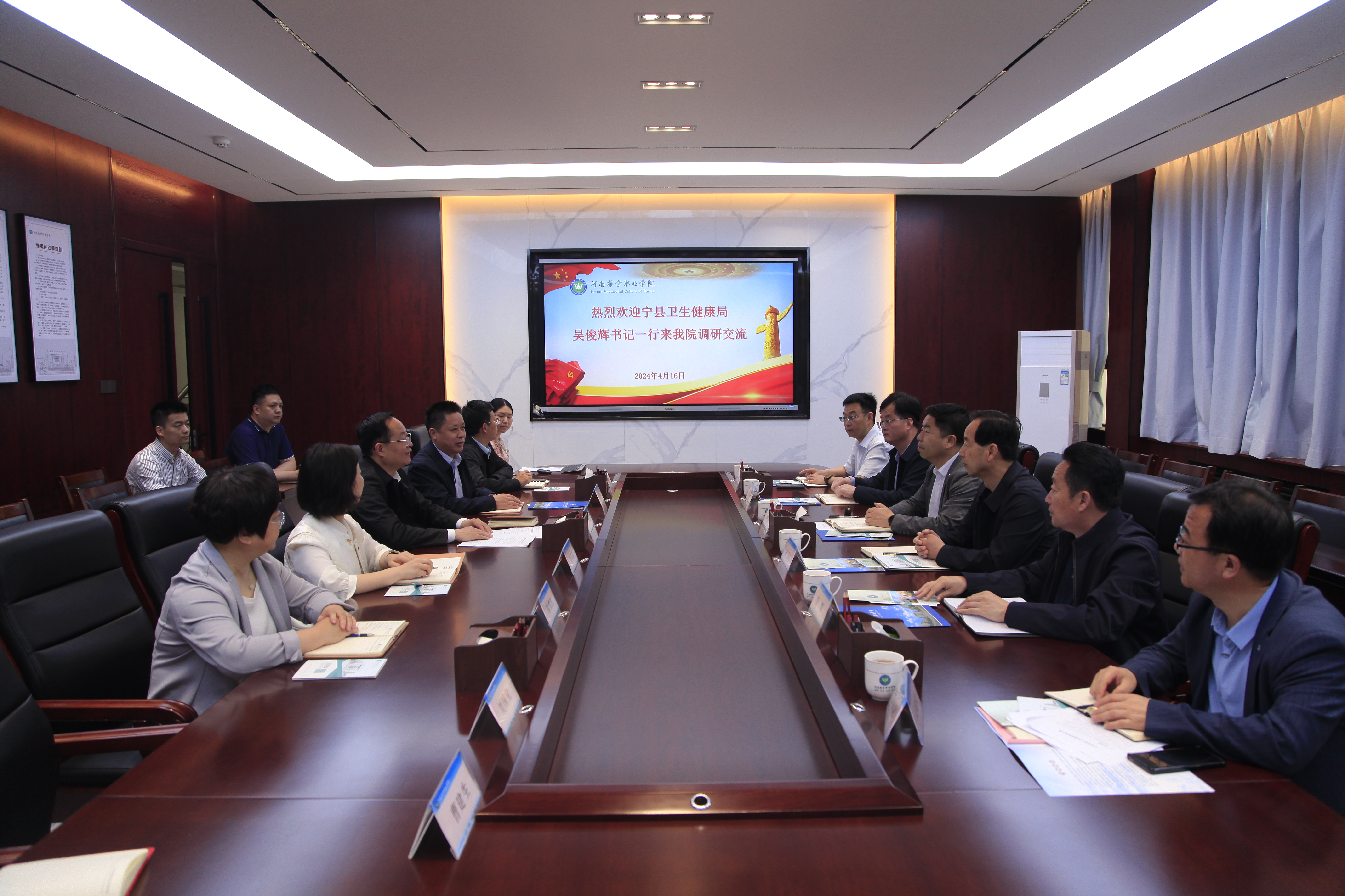 4月16日上午,由甘肃省庆阳市宁县卫生健康局书记吴俊辉带队,宁县卫生机构的管理人员一行6人来我院调研交流。副院长李中良出席交流座谈会,各相关部门负责人参加会议。 会上,吴俊辉表示河南推拿职业学院在业内享有较高声誉,...