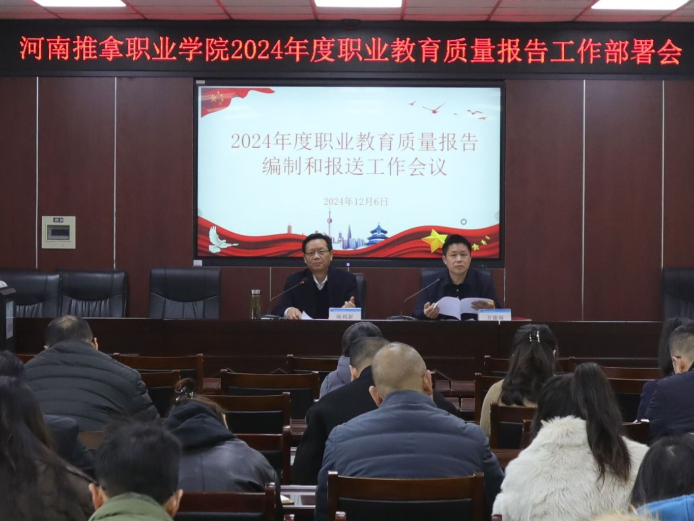 12月6日上午,学院召开2024年度职业教育质量报告编制和报送工作部署会,院长陈相新出席,各部门、单位负责人和具体编制人员参加。会议传达了《河南省教育厅办公室关于做好职业教育质量报告(2024年度)编制、发布和报送工作的通知》精神,并对学院2024年度...