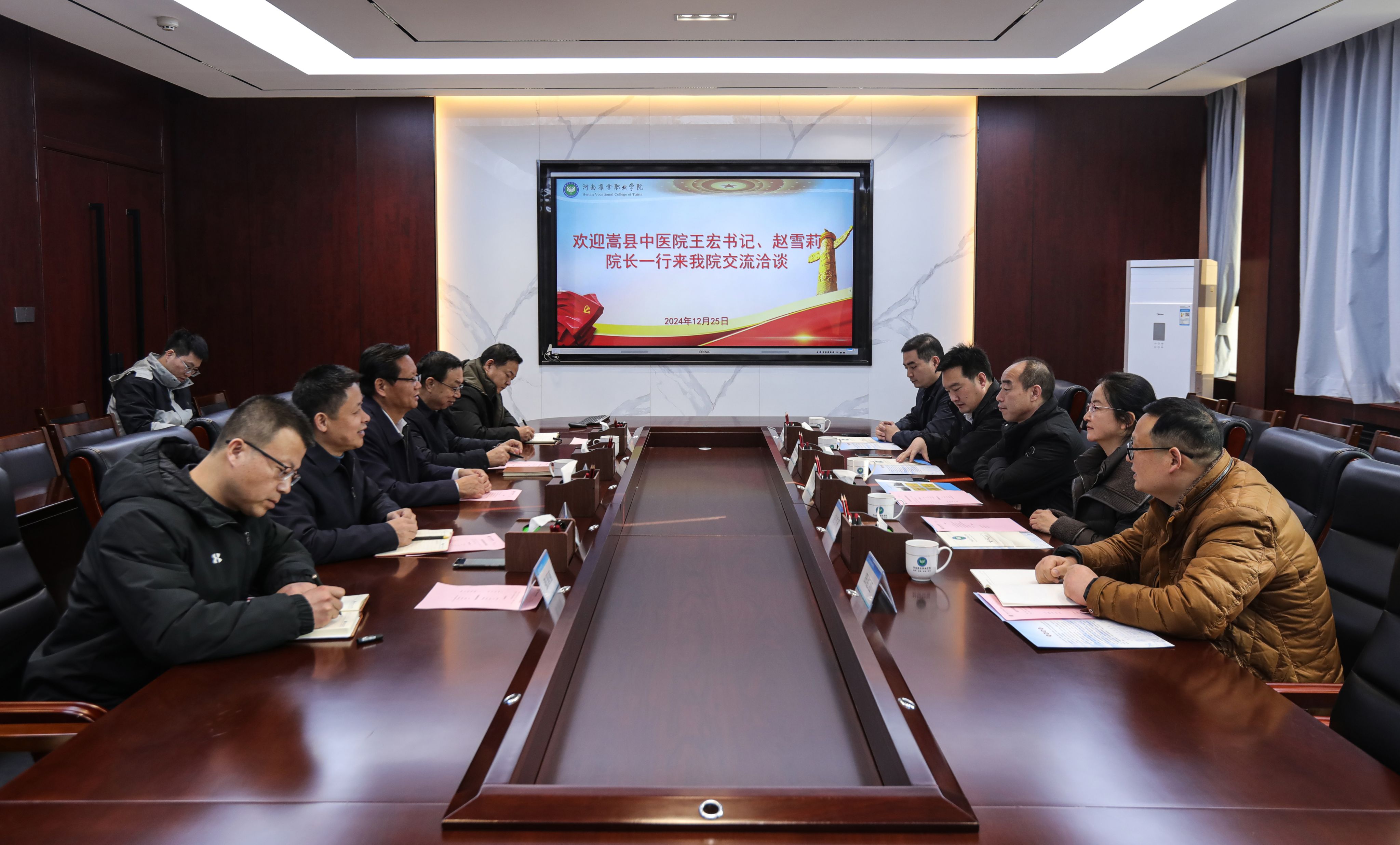 12月25日上午,嵩县中医院党委书记王宏一行5人来我校开展访问交流。院长陈相新、副院长宋朝功及相关部门负责人参加座谈。座谈会上,陈相新代表学校对王宏一行的到来表示欢迎。宋朝功介绍了学校专业建设、课程设置、人才培养模式等情况,希望双方能在实训教...