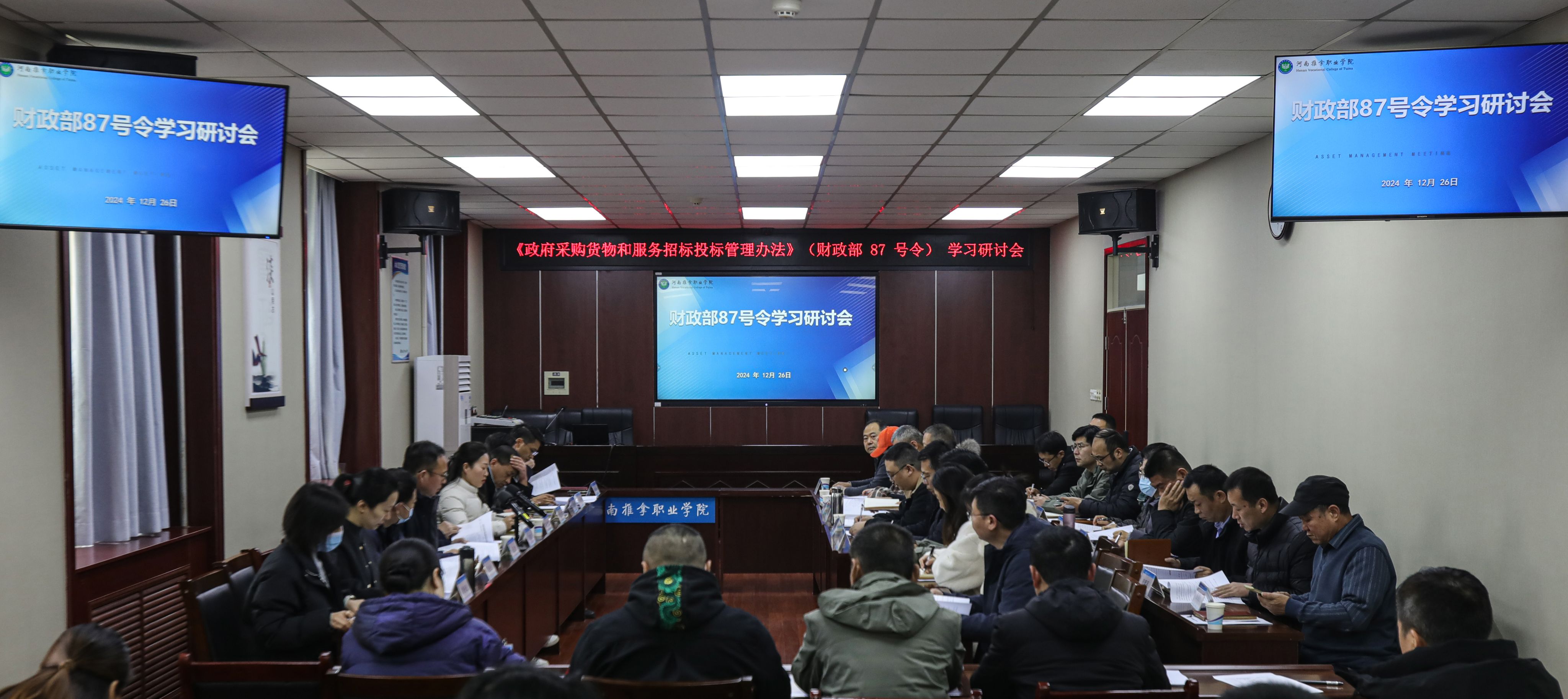 为促进学校招标采购工作规范化、专业化,进一步规范招标文件编制,12月26日下午,学校组织召开了财政部令(第87号)学习研讨会。副院长王轶群出席,各部门(单位)主要负责人、招标采购工作相关人员以及招标代理公司代表参加了会议。会议学习了《政府采购...