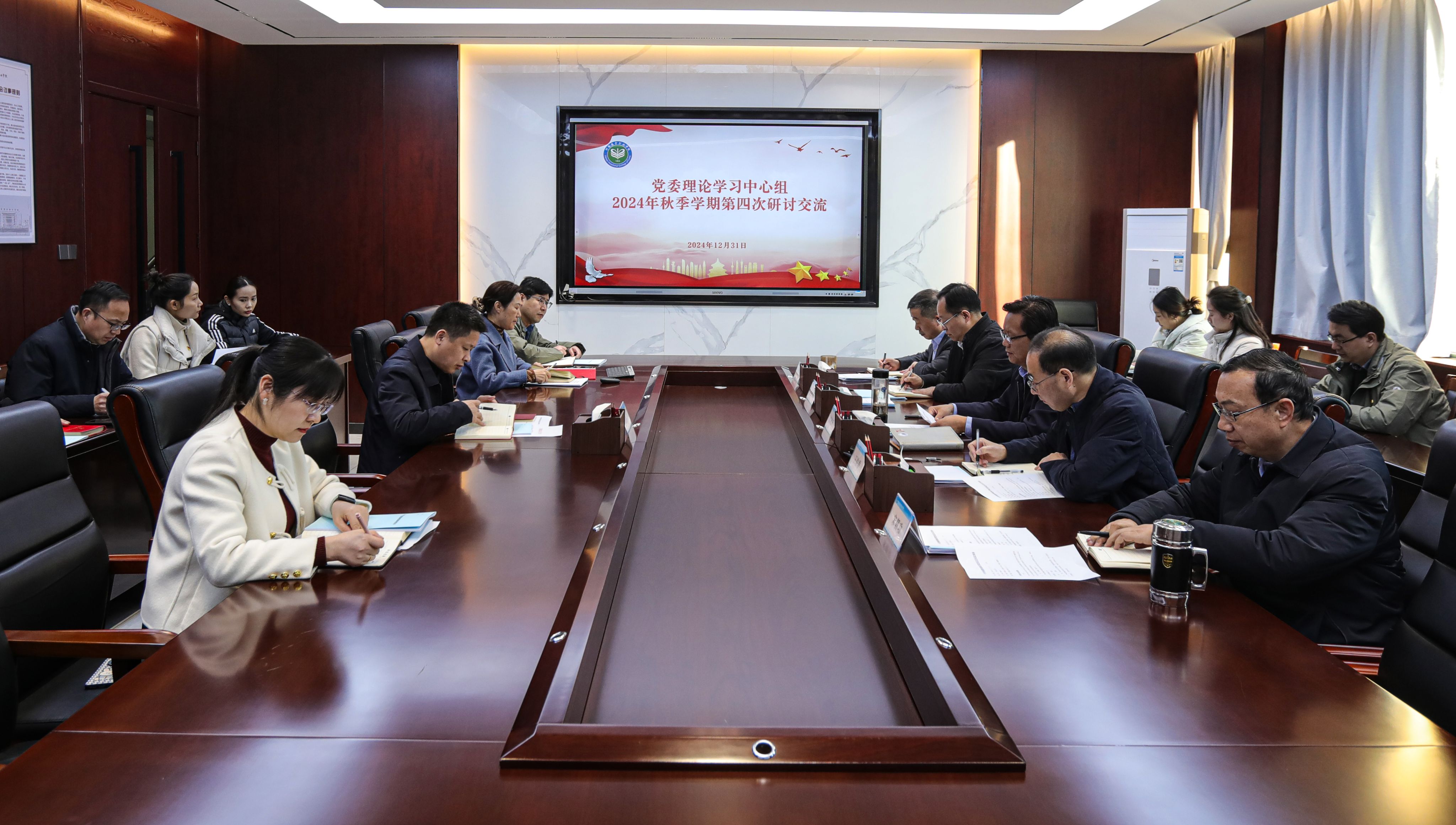 12月31日下午,我校党委理论学习中心组举行2024年秋季学期第四次研讨交流会。校长陈相新主持会议,党委理论学习中心组全体成员,职能部门负责人,部分教学单位负责人参加学习研讨。会上,集中学习了习近平总书记关于思想政治理论课、思想政治教育工作、意...