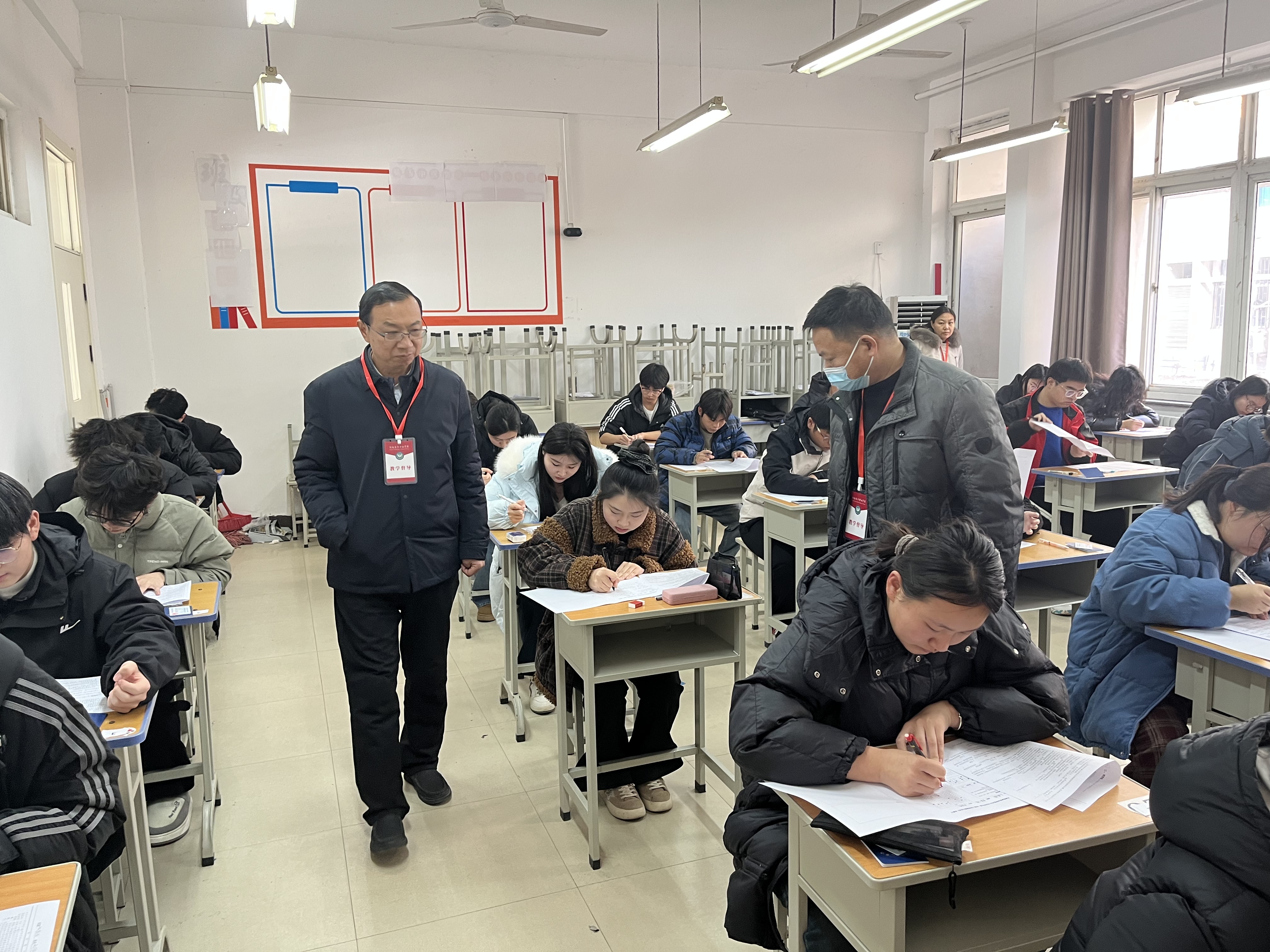 为进一步加强考试管理、严格考风考纪,1月13日上午,副校长宋朝功、教务处负责人及相关工作人员,深入考场查看期末考试情况。从巡考情况来看,各考场秩序有条不紊,监考教师认真负责,严格执行监考流程。学生考试状态良好,遵守考试纪律,考风考纪整体良好...
