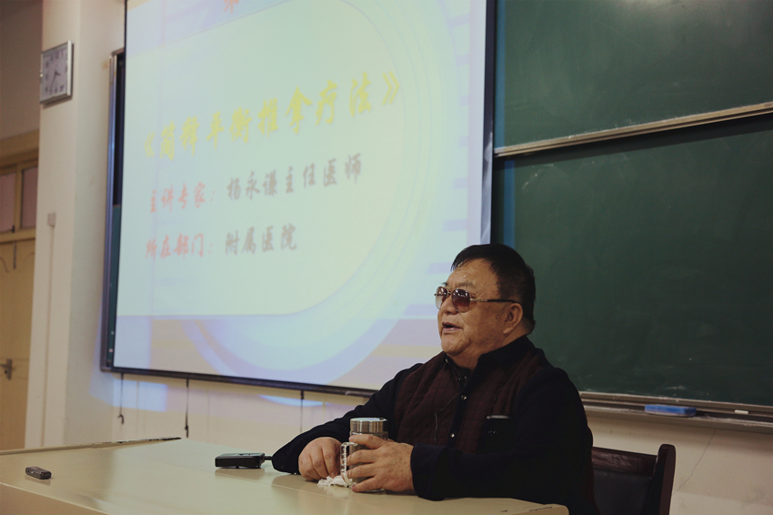 11月30日下午,第一阶梯教室座无虚席。由学院工会主办,针灸推拿系、中职教学部和附属医院联合承办的“青年教师临床推拿教学能力提升系列讲座”第二讲正在火热进行。 学院附属医院退休专家杨永谦主任医师应邀主讲《...