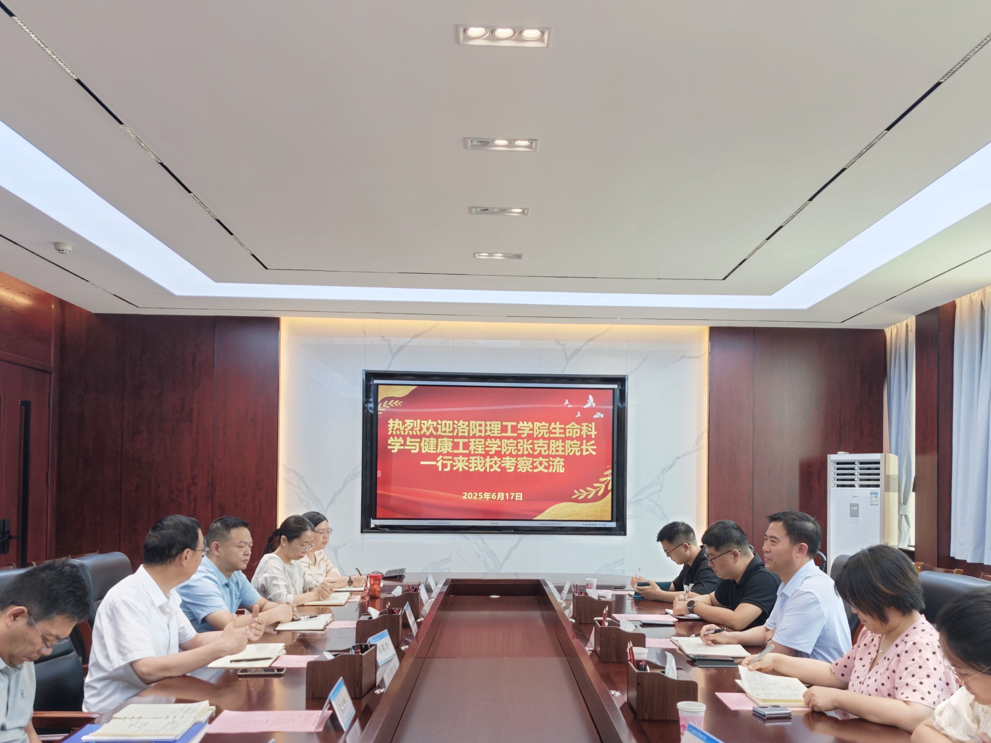 近日,洛阳理工学院生命科学与健康工程学院院长张克胜一行5人,来到我校进行考察交流。副校长宋朝功及相关职能部门、系部负责人参加座谈。座谈会上,双方分别介绍了各自单位的历史沿革、专业设置、人才培养特色、科研方向及未来发展思路,重点围绕生命科学...