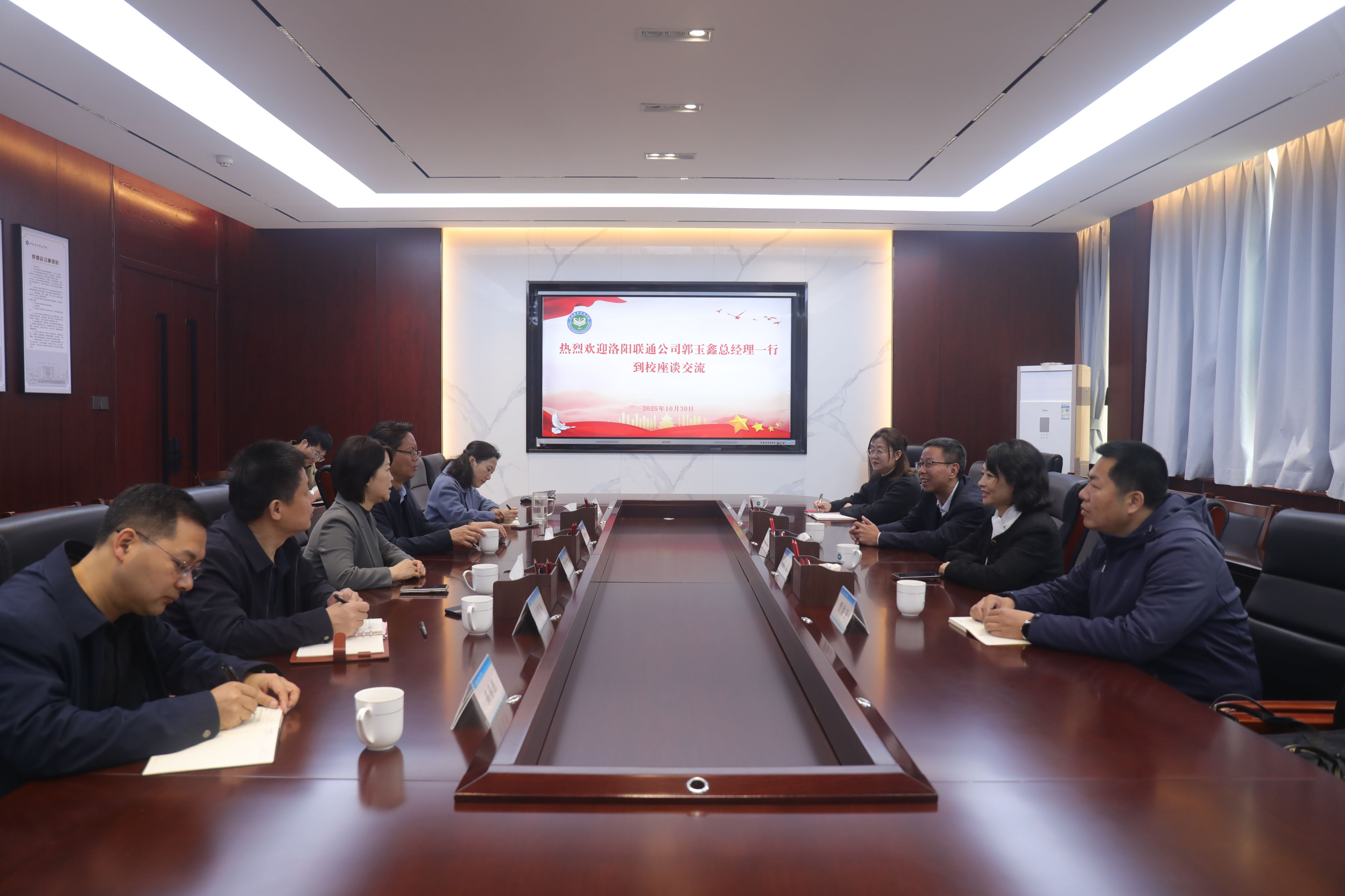 10月30日,洛阳联通公司总经理郭玉鑫一行4人来校访问交流,共话发展共识,推进校企合作。党委书记付晓丽,校长陈相新及有关部门参加座谈。陈相新对郭玉鑫一行的到来表示热烈欢迎,回顾学校与洛阳联通公司合作情况,并感谢洛阳联通公司在学校智慧校园建设、...