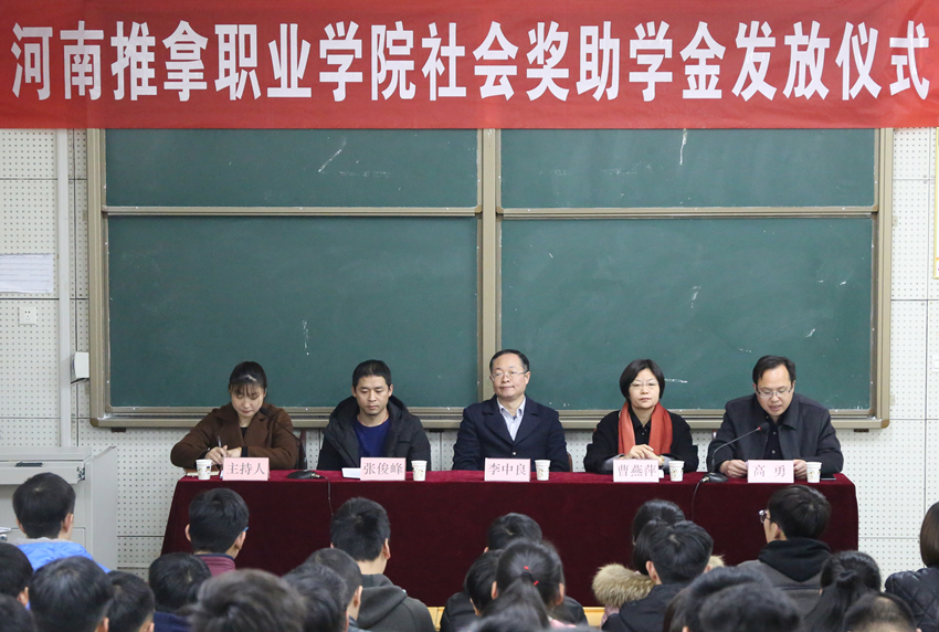 12月6日下午,我院社会奖助学金发放仪式在第五阶梯教室举行。副院长李中良出席了发放仪式,郑州心诚推拿养生堂总经理曹燕萍、洛阳泽腾餐饮管理有限公司总经理张俊峰与百余名师生参加了此次发放仪式。 李中良同志、...