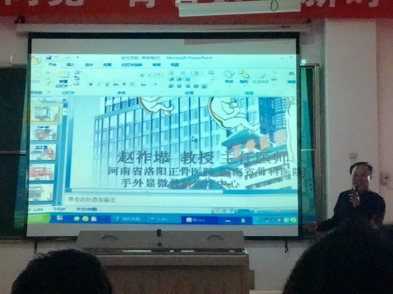 为提高教学质量,中医骨伤系在学院支持下,外聘多名临床骨科专家,为学生讲授《局部解剖学》、《骨科手术学》等中医骨伤专业核心课程。5月7日下午,在教学楼第三阶梯教室,外聘教授河南省洛阳正骨医院主任医师、硕士生导师赵祚塨教授来我院为学生讲授《...