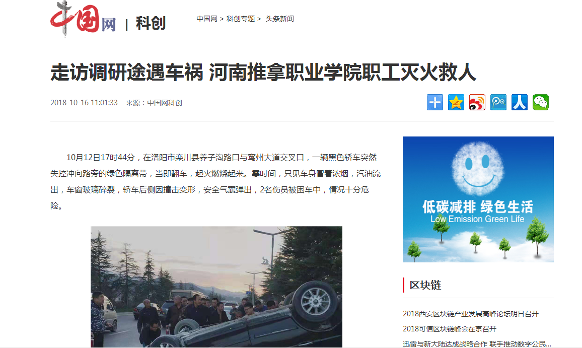 10月3日,武汉长江大桥汉阳桥头堡附近,一男子从护坡上滚落江中,周边市民将其打捞上岸,危难之际,我院护理系2014级毕业生杨爽毫不犹豫伸出援手,和一位冬泳运动员对其进行了紧急营救。 10月12日,洛阳市栾川县养子沟路口与鸾州大道交叉口,...